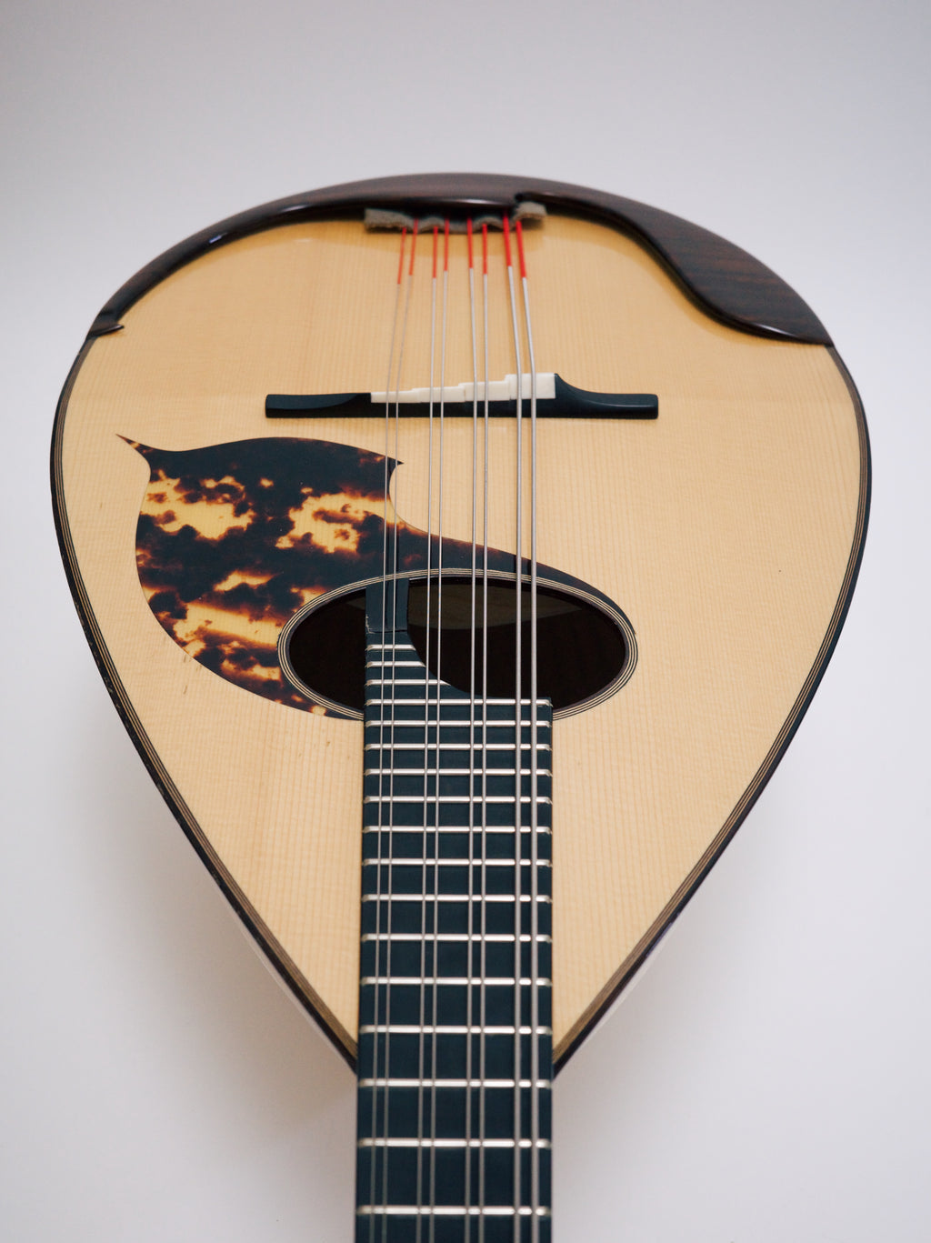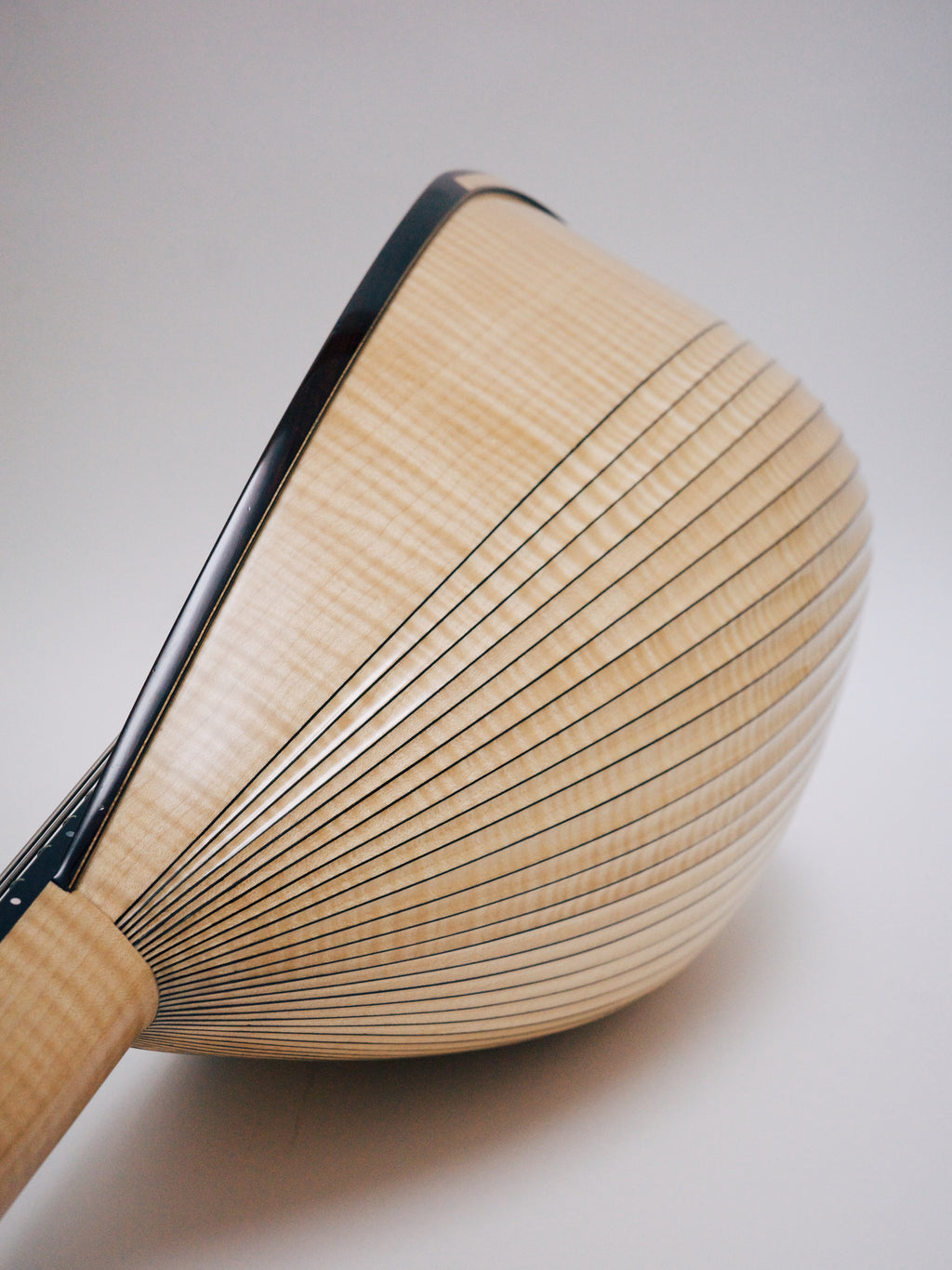 落合の上位モデルはヘッドからボディまでメイプルが使用され、こちらも上質なメイプルの証である虎杢が美しい個体です。