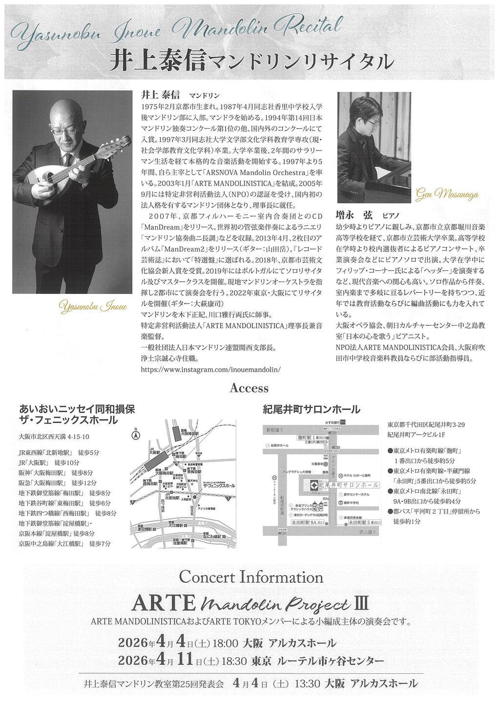 井上泰信(マンドリン), 増永弦(ピアノ)