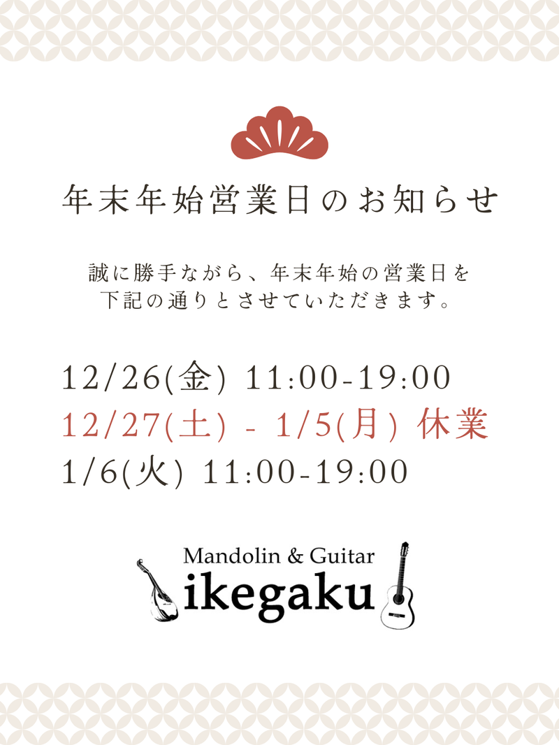 - 年内最終営業日: 12/26(金) 11:00-19:00
