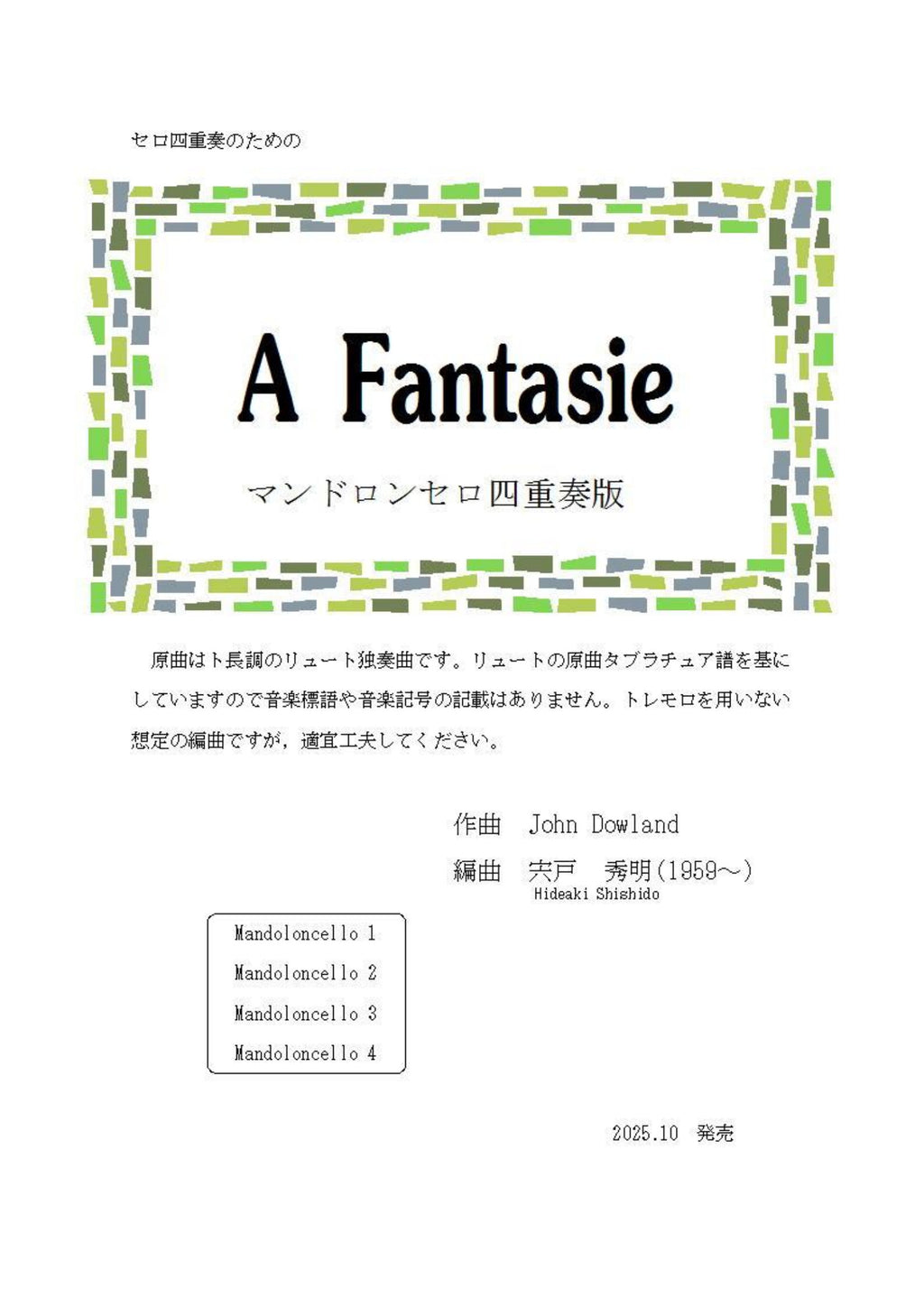 【ダウンロード商品】 編成: 4マンドロンチェロ作曲: John Dowland原曲はリュート独奏曲です。リュートの原曲タブラチュア譜を基にしていますので音楽標語や音楽記号の記載はありません。トレモロを用いない想定の編曲ですが、適宜工夫してください。