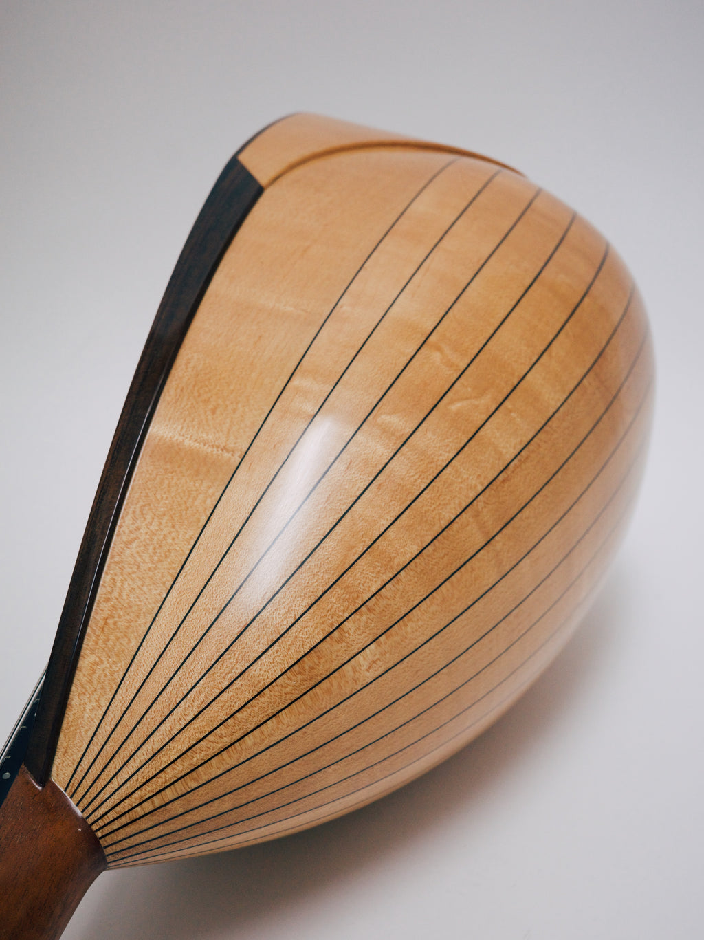 ボディはメイプル、一本棹のヘッド・ネックにはマホガニーを使用。