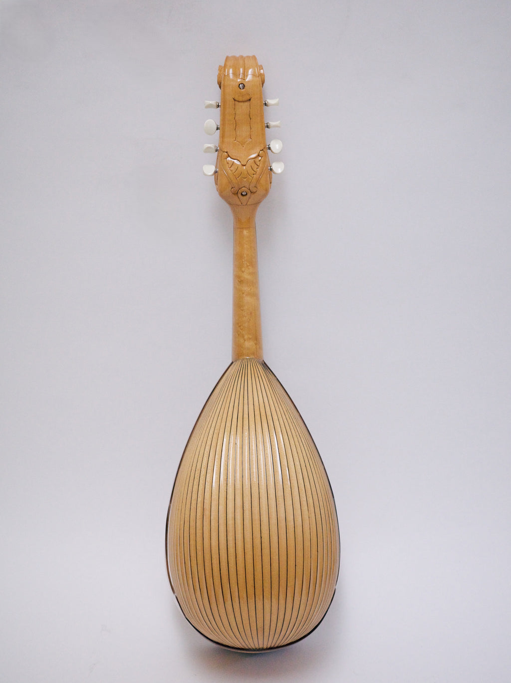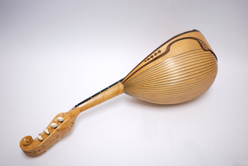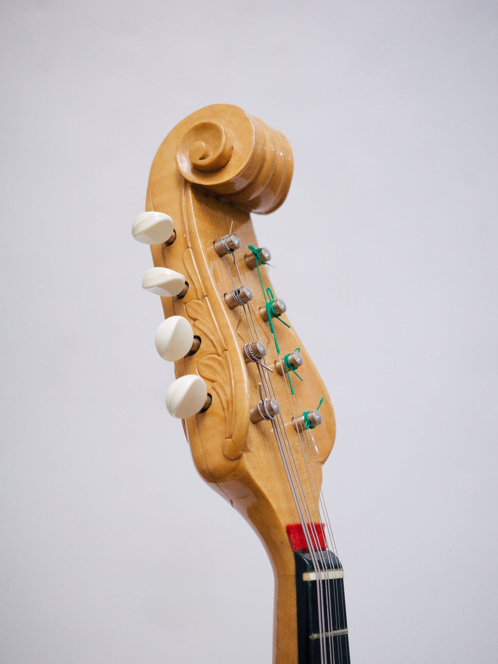 彫り込みのあるメイプルボディに、スクロールヘッドにはカラーチェ伝統の彫刻が施されています。