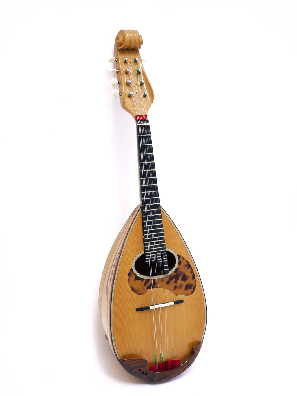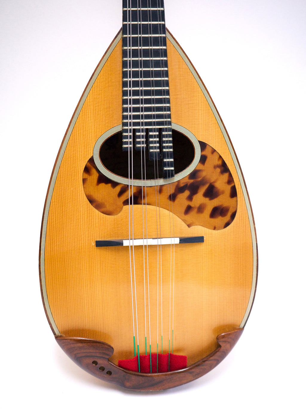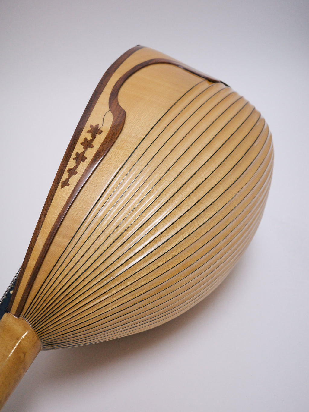 彫り込みのあるメイプルボディに、スクロールヘッドにはカラーチェ伝統の彫刻が施されています。