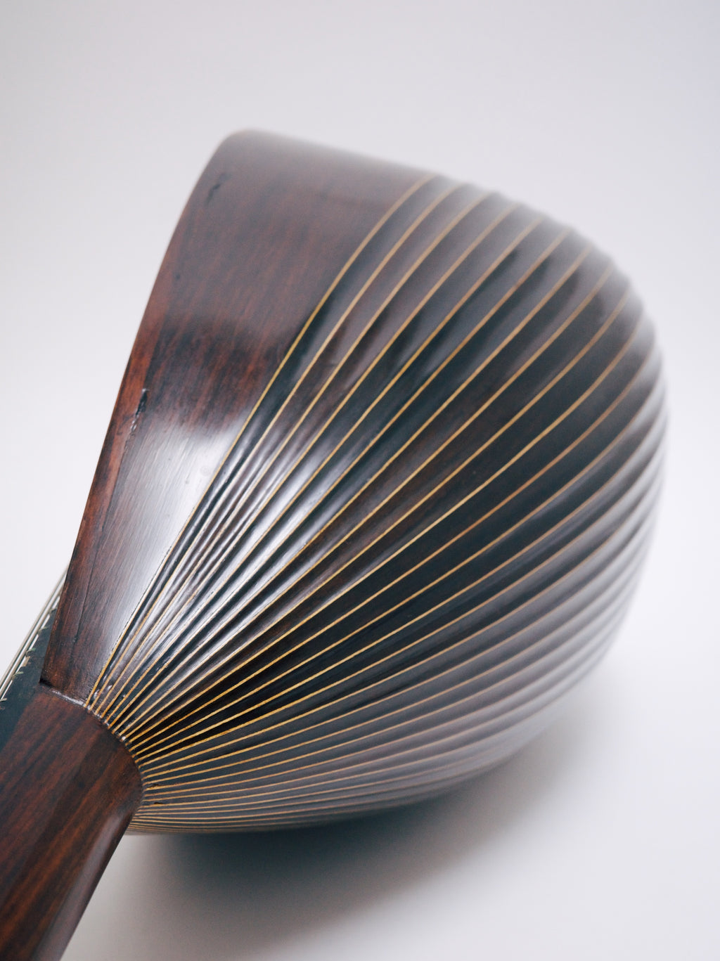 ローズウッドボディには振動を増強するための彫り込みが施されています。