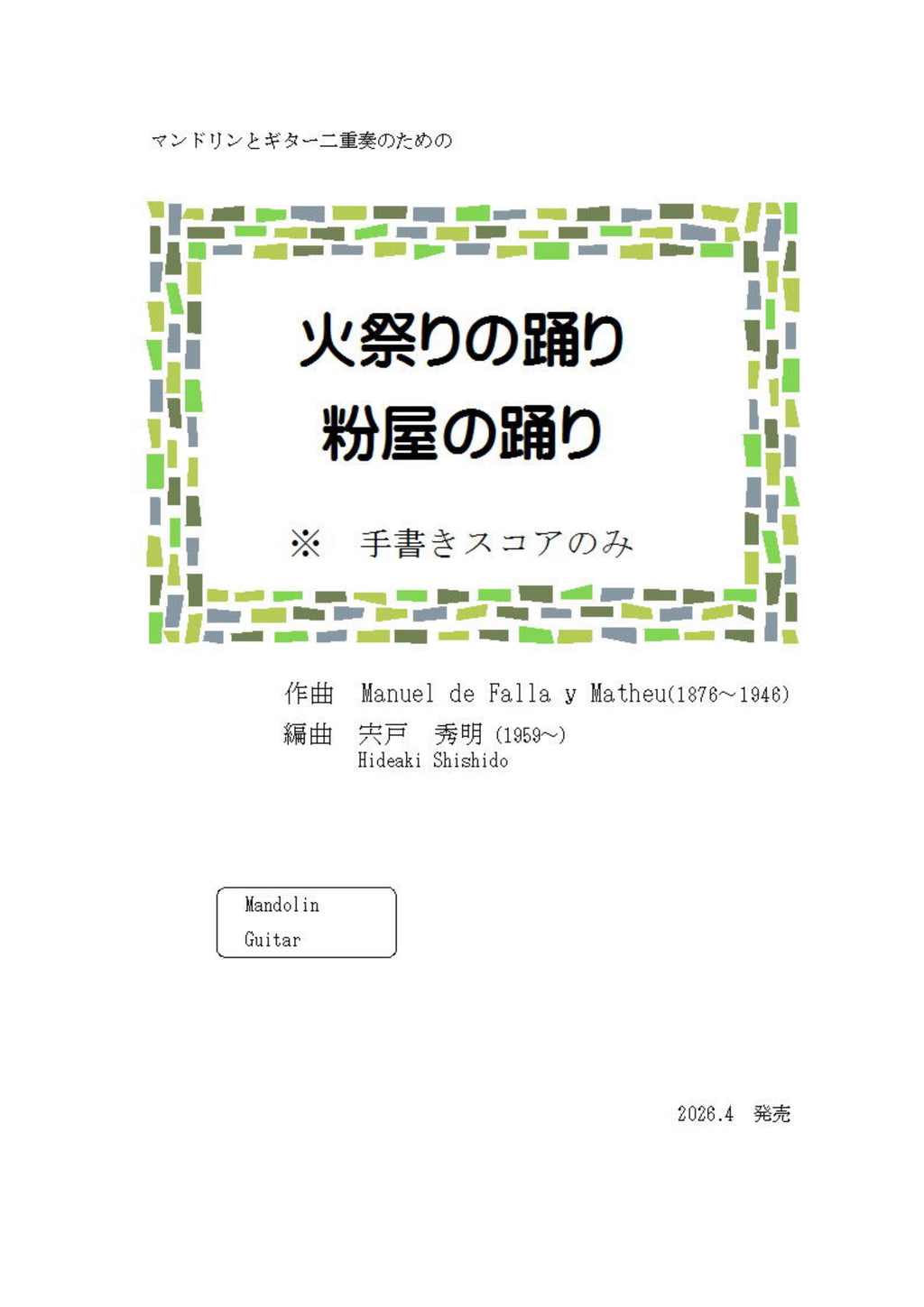 【ダウンロード楽譜】宍戸秀明 編曲: マンドリンとギター二重奏のための 火祭りの踊り - 粉屋の踊り