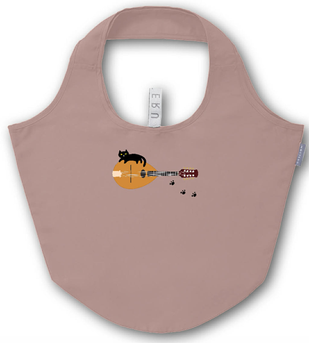 マンドリンに猫が寄り添うデザインの、ラウンド型エコバッグです。