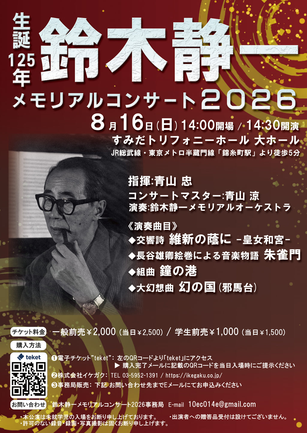 지휘: 아오야마 타다 콘서트 마스터: 아오야마 료